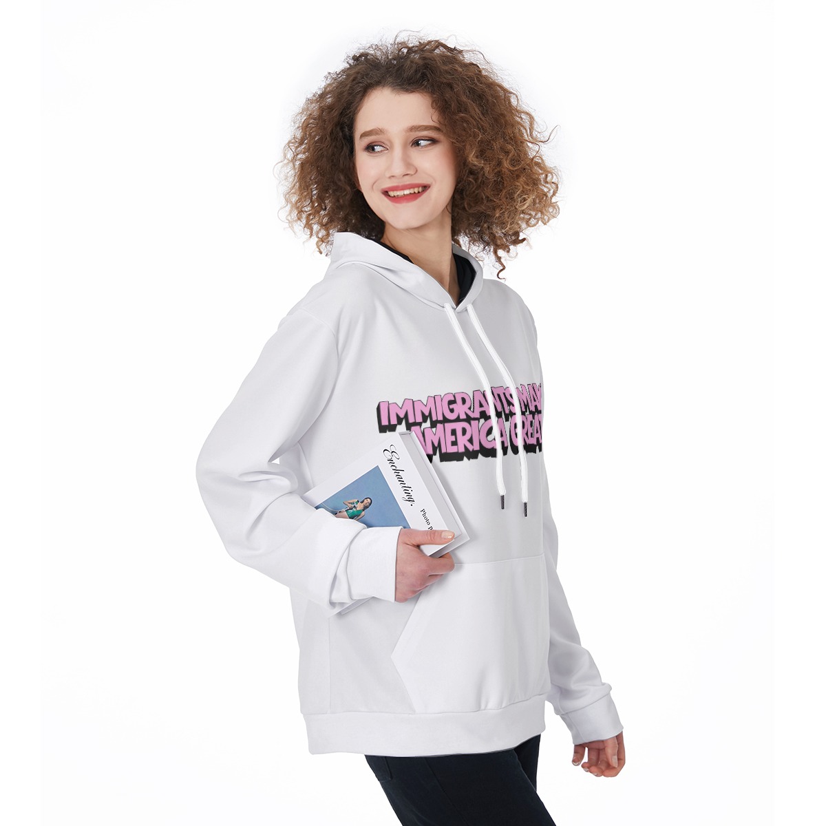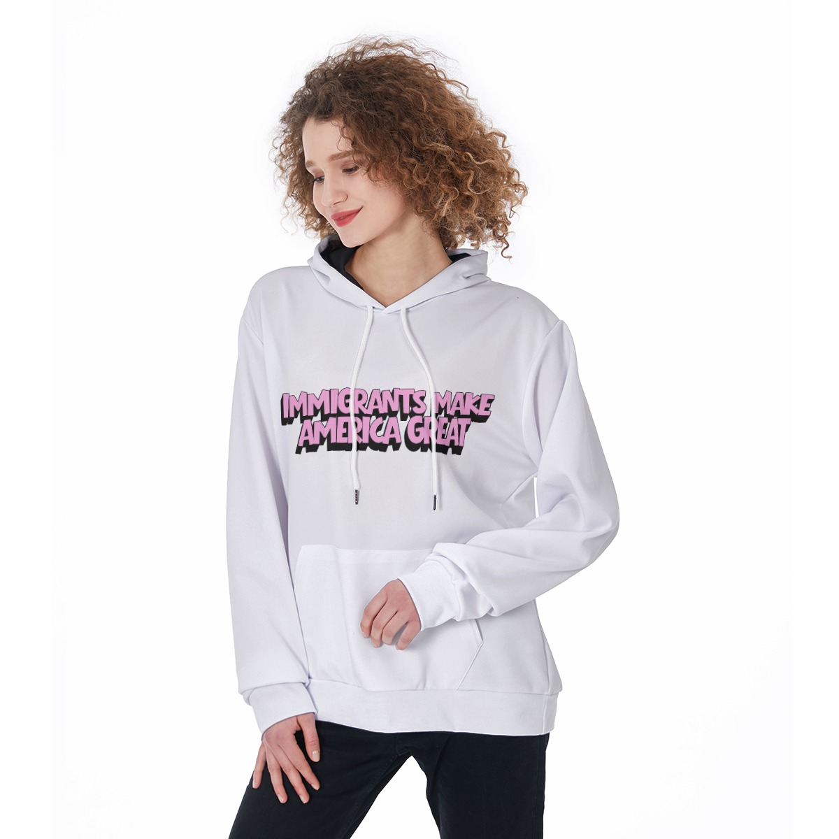 The “Immigrants Make America Great” Hoodie is a modern essential that pairs a meaningful statement with everyday comfort and clean design. Made from smooth, structured scuba fabric, this hoodie offers a soft yet substantial feel with comfortable stretch and durability. Designed with a regular fit, front pocket, and contrast details including a white drawstring and black inner hood, it’s perfect for layering, casual wear, or making a statement wherever you go.