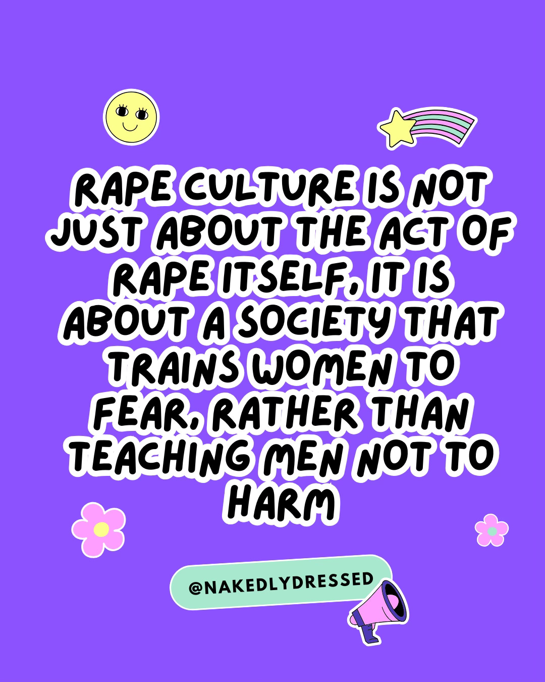 Rape culture means we teach girls to avoid getting raped instead of teaching boys not to rape. That’s backwards